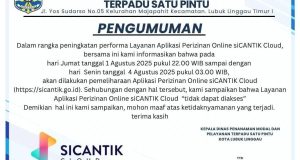 Pengumuman Pemeliharaan Aplikasi Perizinan Online siCantik Cloud
