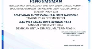Read More »Pengumuman Surat Edaran Wali Kota Lubuk Linggau tentang Hari Libur Nasional dan Cuti Bersama tahun 2024.