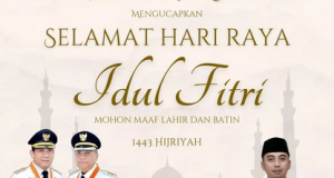 “Selamat Hari Raya Idul Fitri 1443 H. Taqabbalallahu minna wa minkum wa taqabbal ya kariim. Mohon maaf lahir dan batin. Semoga Allah SWT menjadikan kita semua sebagai hamba-hambaNya yang kembali ke fitrah.”