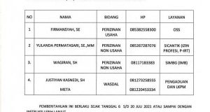 Dengan adanya Pemberlakuan Pembatasan Kegiatan Masyarakat (PPKM) di Kota Lubuklinggau, maka pelayanan administrasi pada Dinas Penanaman Modal dan Pelayanan Terpadu Satu Pintu Kota Lubuklinggau dilakukan melalui aplikasi WA